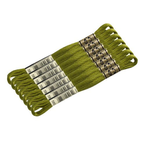 Премиальная нить мулине D.M.C. в глубокoм натуральном оттенке. Цвет №580 — это тёмный оливково-зелёный тон, идеально подходящий для листвы, ботаники, природных мотивов, теней и глубины зелёных градаций.
