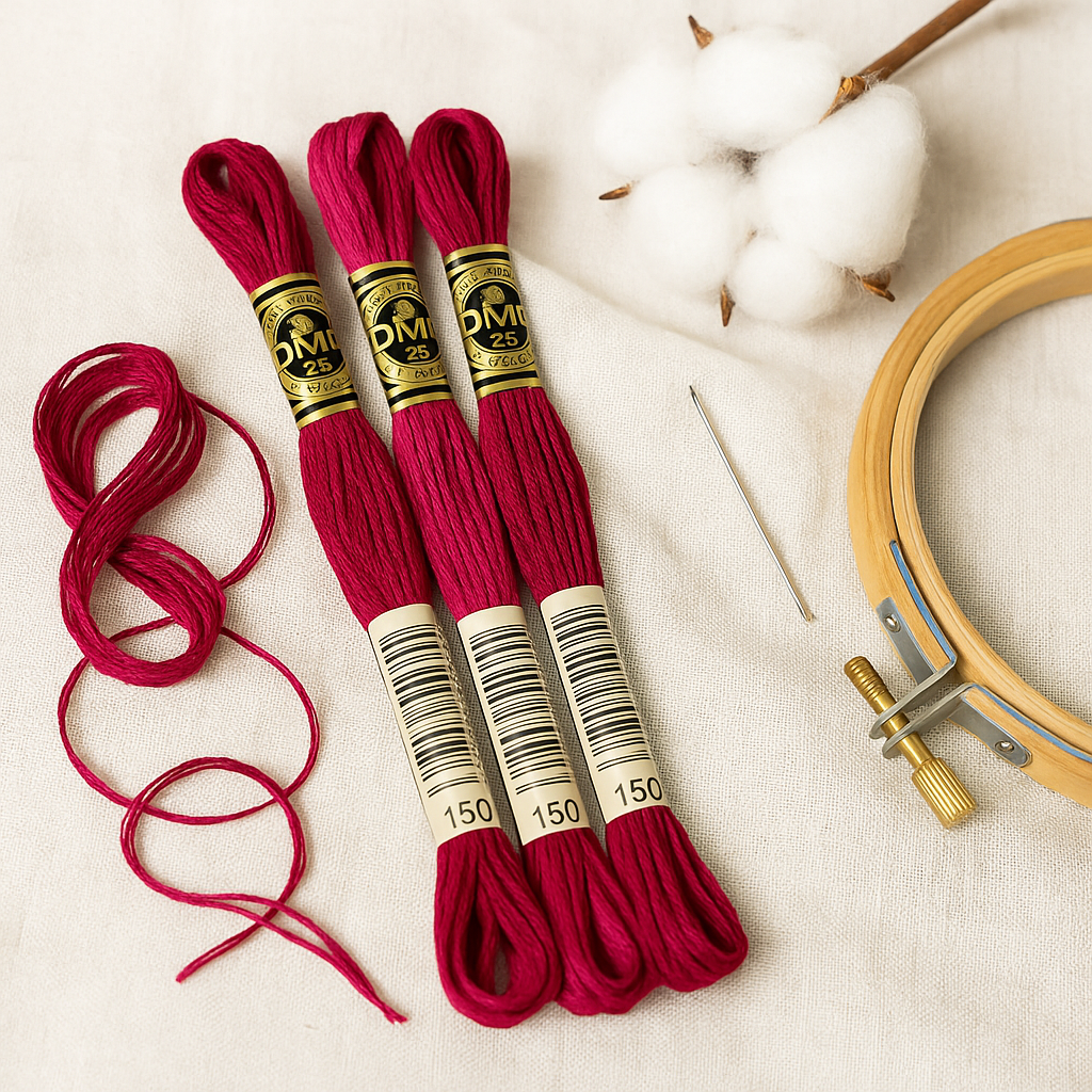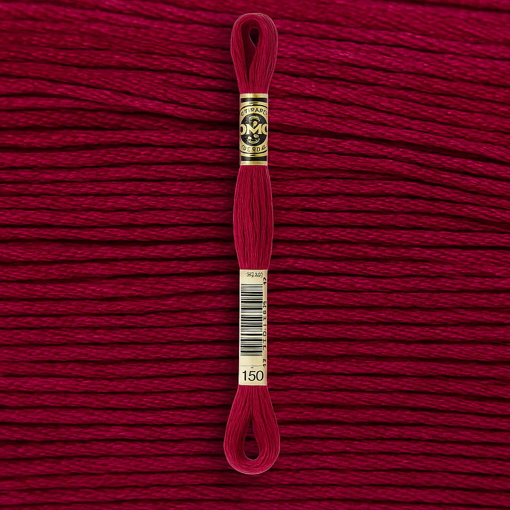 DMC Mouline №150 — насыщенный малиново-розовый оттенок с глубоким, ярким тоном. Этот цвет отлично подходит для вышивки цветов, романтичных узоров, этнических орнаментов и декоративных элементов, где важен акцент на энергии и женственности.