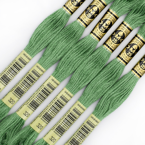 Спокойный зелёный оттенок со слегка оливковым подтоном. Напоминает цвет фисташки или молодой листвы. Идеален для вышивки природных мотивов — листьев, трав, веточек, а также для фоновых переходов.