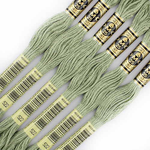 Мягкий светло-зелёный оттенок с приглушённым серо-оливковым подтоном. Придаёт вышивке спокойствие и натуральность, идеально подходит для флористики, ландшафтных сюжетов, винтажных и этнических дизайнов.