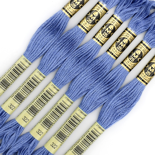 Премиальная вышивальная нить D.M.C. в мягком и спокойном оттенке. Цвет №322 — это средне-голубой тон, идеально подходящий для неба, воды, цветочных мотивов, детских дизайнов и нежных градиентов.