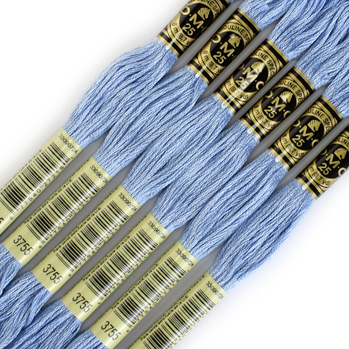 Классическое хлопковое мулине D.M.C. Art.117 — стандарт качества в мире вышивки. Нить состоит из шести легко разделяемых прядей, что позволяет создавать как тонкие, так и объёмные стежки. Цвет 3755 — нежный голубовато-небесный оттенок, идеально подходящий для светлых, воздушных композиций.