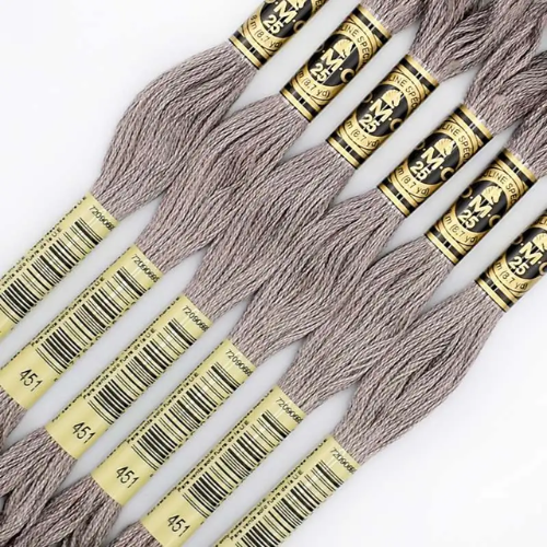 Премиальная вышивальная нить D.M.C. в спокойном, нейтральном оттенке. Цвет №451 — это мягкий тёплый серо-коричневый тон, идеально подходящий для теней, контуров, проработки деталей, кожи, животных и природных мотивов.
