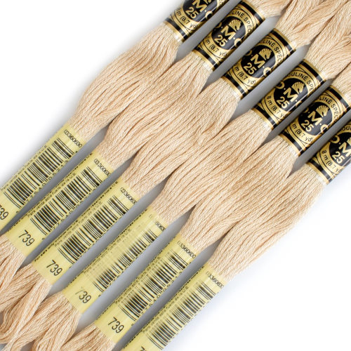 Классическая нить мулине D.M.C. в светлом натуральном оттенке. Цвет №739 — это очень светлый бежевый, почти кремовый тон, идеально подходящий для кожи, бликов, нежных переходов, пастельных мотивов и вышивки в стиле винтаж.