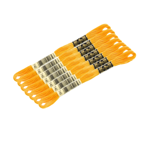 Премиальное мулине D.M.C. в ярком и солнечном оттенке. Цвет №742 — это насыщенный оранжево-жёлтый тон, идеально подходящий для цветочных мотивов, фруктов, осенних дизайнов, акцентов и эффектных градиентов.