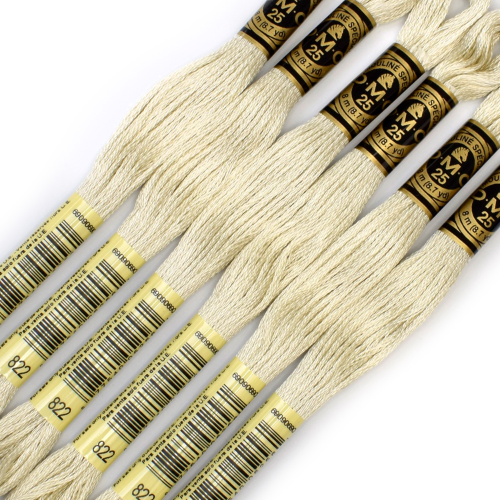 Классическая нить мулине D.M.C. в мягком нейтральном оттенке. Цвет №822 — это очень светлый бежево-кремовый тон, идеально подходящий для кожи, бликов, теней, пастельных мотивов, винтажных дизайнов и деликатных переходов.