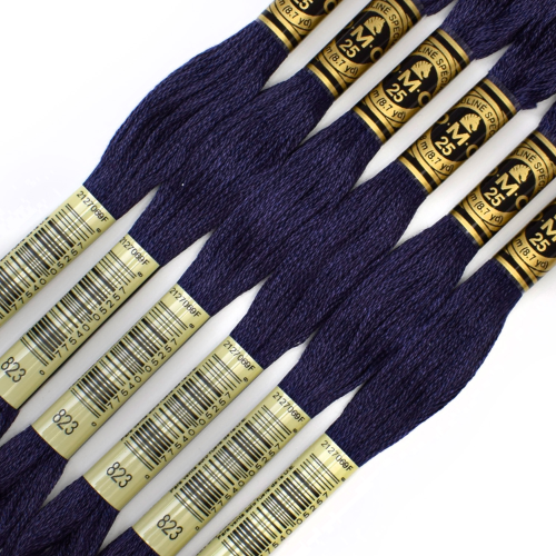 Премиальная нить мулине D.M.C. в одном из самых глубоких и насыщенных оттенков синего. Цвет №823 — это очень тёмный классический синий, идеально подходящий для контуров, теней, геометрических узоров, ночных мотивов и выразительных деталей.