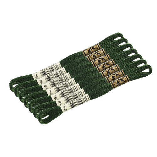 Классическая нить мулине D.M.C. в очень тёмном природном оттенке. Цвет №890 — это глубокий тёмно-оливковый зелёный, идеально подходящий для ботаники, листьев, стеблей, природных теней и детализации в зелёной палитре.