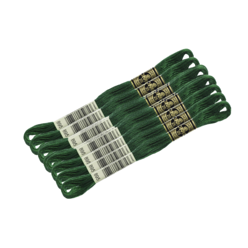 Премиальная нить мулине D.M.C. в глубокoм природном оттенке. Цвет №895 — это насыщенный тёмный оливково-зелёный тон, идеально подходящий для вышивки листвы, деревьев, ботаники, природных теней и любых дизайнов с натуральной зелёной палитрой.