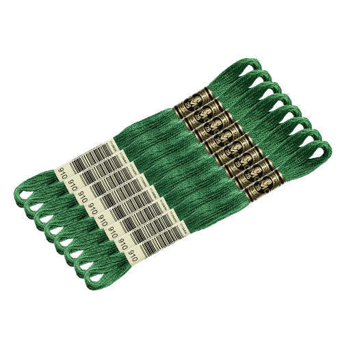 Премиальная вышивальная нить D.M.C. в насыщенном природном оттенке. Цвет №910 — это глубокий тёмно-зелёный тон, идеально подходящий для листвы, хвои, ботаники, пейзажей, природных теней и выраженных контрастов в зелёной палитре.