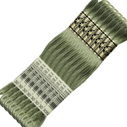 Нежный зелёно-серый оттенок со спокойным оливковым подтоном. Элегантный, сбалансированный и природный цвет, создающий ощущение утончённости и гармонии. Отлично подходит для вышивки листвы, стеблей, трав, архитектурных деталей и пейзажей в натуральной гамме.