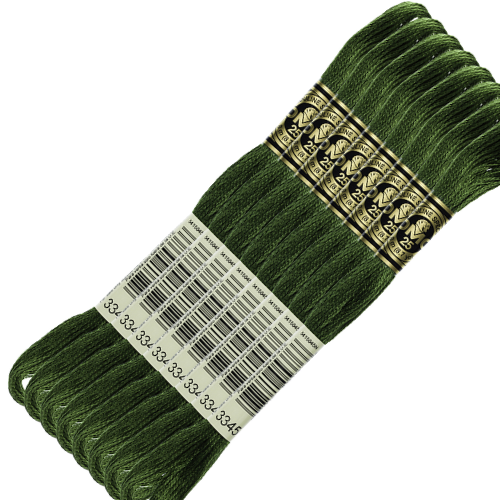 Глубокий тёмно-зелёный оттенок с благородным хвойно-оливковым подтоном. Богатый и насыщенный цвет, придающий вышивке выразительность, контраст и природную глубину. Идеален для листвы, ветвей, растительных узоров, а также для контуров и теней в природных мотивах.