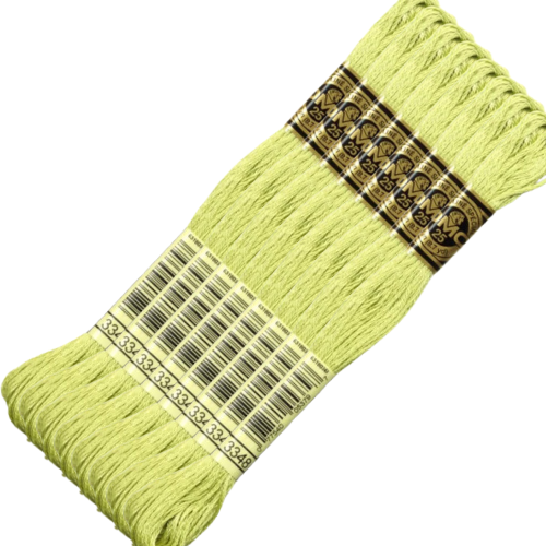Светлый жёлто-зелёный оттенок с мягким лимонно-травяным подтоном. Свежий, нежный и жизнерадостный цвет, придающий вышивке лёгкость, свет и ощущение весны. Идеален для молодых листьев, бутонов, цветочных стеблей и деталей природных сюжетов.
