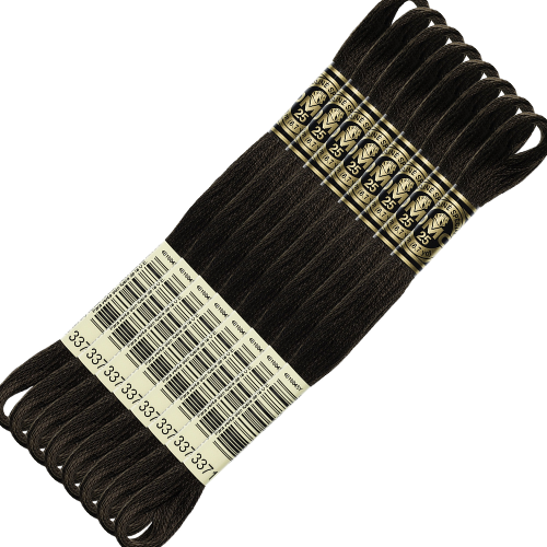 Очень тёмный коричнево-чёрный оттенок с глубоким земляным подтоном. Интенсивный, выразительный и нейтральный цвет, идеально подходящий для создания контуров, теней и акцентов. Добавляет вышивке реалистичность, чёткость и профессиональную глубину. Отлично заменяет чёрный цвет в дизайнах, где требуется более мягкий, натуральный контраст.