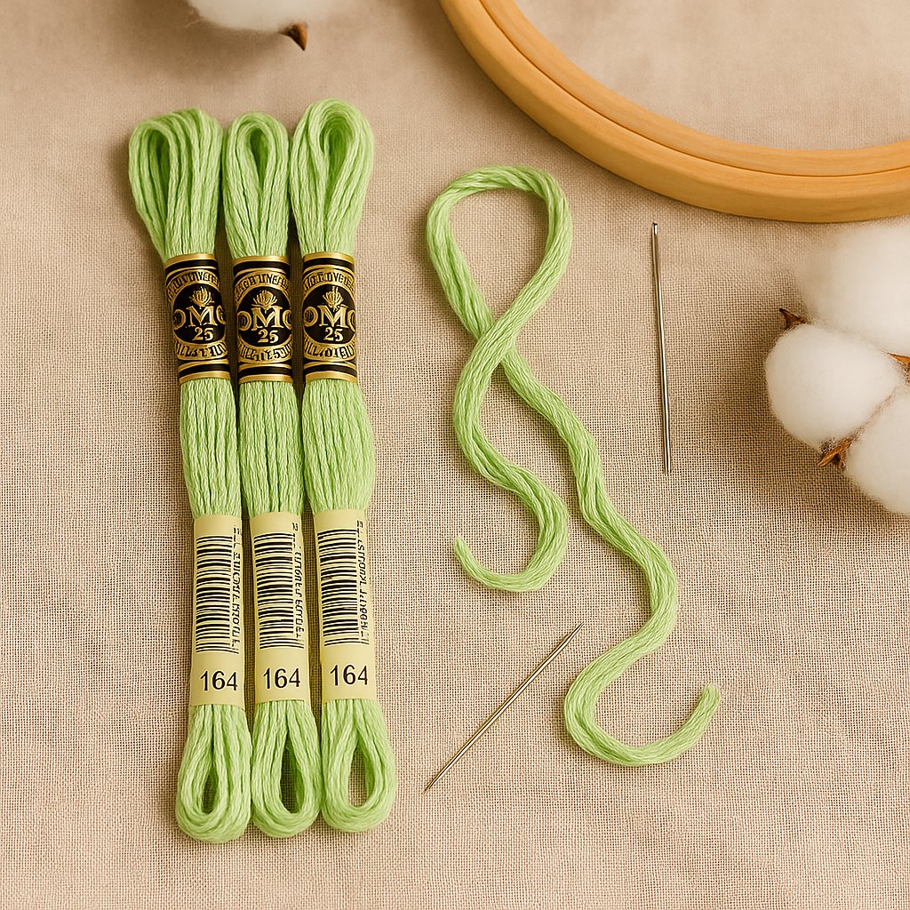 DMC Mouline Spécial №164 — мягкий светло-зелёный оттенок, напоминающий нежные весенние листья. Этот тон придаёт лёгкость и свежесть вашим вышивкам, идеально подходит для природных сюжетов, флористики и детских дизайнов. Нить состоит из 6 легко разделяемых прядей, что позволяет регулировать толщину стежка и создавать тонкие цветовые переходы.