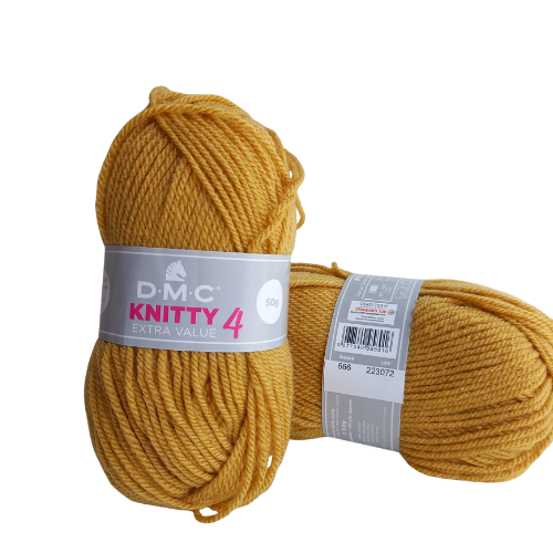 DMC Knitty 4 este un fir moale și durabil, 100% acrilic, disponibil într-o gamă largă de nuanțe moderne. Se tricotează ușor, își menține bine forma și este potrivit pentru toate proiectele, de la îmbrăcăminte la accesorii și decorațiuni.