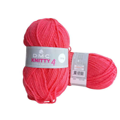 DMC Knitty 4 este un fir moale și durabil, 100% acrilic, disponibil într-o gamă largă de nuanțe moderne. Se tricotează ușor, își menține bine forma și este potrivit pentru toate proiectele, de la îmbrăcăminte la accesorii și decorațiuni.