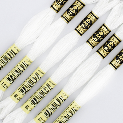 Премиальная нить мулине D.M.C. в самом ярком и чистом белом оттенке палитры. Цвет B5200 — это кристально-белый, более светлый, чем классический белый 5200, идеально подходящий для снежных мотивов, бликов, контрастов, свадебных дизайнов и вышивки на тёмной канве.
