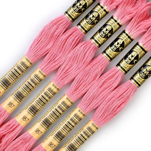 Нежный светло-розово-коралловый оттенок с тёплым и мягким подтоном. Более деликатный, чем 956, он придаёт вышивке женственность, свежесть и романтичность. Идеально подходит для лепестков цветов, щёчек, детских и свадебных дизайнов, винтажных мотивов и плавных переходов в розовой гамме.